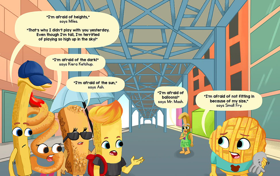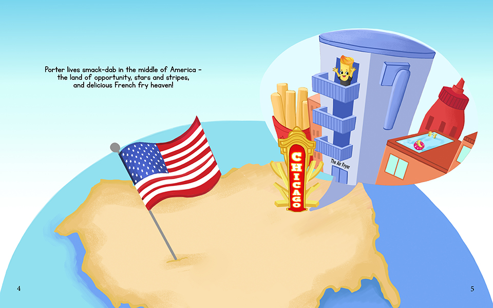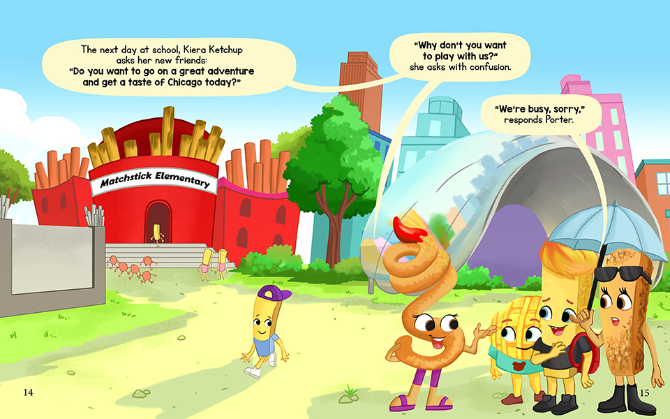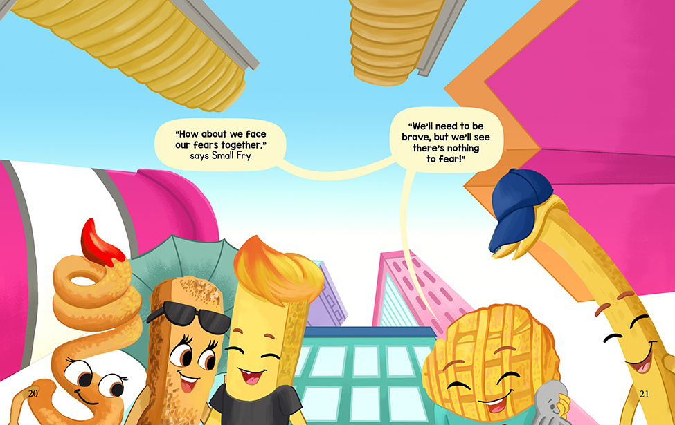 French fries come in all shapes and sizes—just like friends! Meet Porter, a brave and thoughtful steak fry, and his crew of Fry Friends as they take on the world—one adventure at a time! In Don’t Worry, Fry Friends, Porter and his pals explore the Windy City of Chicago, face fears big and small, and discover the true meaning of friendship.